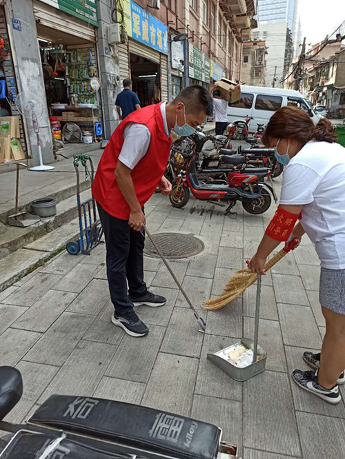 9月7—9日,我院下沉党员突击队队员黄炜、张阳、王康、蓝雷宇、张灿、王倩、杨威(小)等7位党员同志,分三批,连续三天来到我院结对社区——硚口区汉正街共和社区。各位党员在社区完成简短报到手续后,都立即行动起来,佩戴党员徽章、换上志愿者马甲,拿起扫帚、撮箕、火钳,投身到社区火热的“文明创建”、“清洁家园”等服务活动之中。