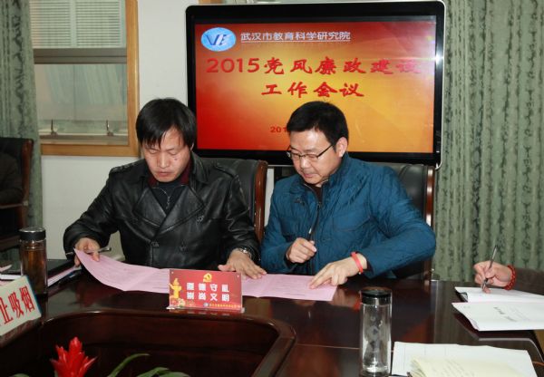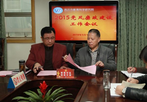 3月19日上午,我院召开党风廉政建设工作会。全体院领导、院中层干部、支部书记和纪检委员参加了会议。会上下发了我院《2015年党务(统战)工作要点》《2015年纪检监察工作要点》《2015年中心组学习计划》和《以案明纪,警钟长鸣》案例选编等文件资料。各部门、各支部主要负责人与院长、院党委副书记王池富和院党委副书记、纪委书记李碧武签订了党风廉政建设责任书。会议由院党委副书记、纪委书记李碧武主持。