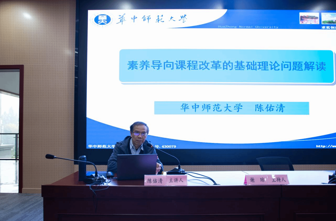 陈佑清教授报告主题为《素养导向课程改革的基础理论问题解读》。陈教授立足时代课程改革背景,聚焦“学生素质(素养)发展的取向、机制及其教学促进”等问题,围绕核心素养的原初含义、国际和国内对核心素养的理解及核心素养导向的教学方式等内容,进行了系统的理论阐述和案例分析,阐明了以综合运用知识解决实际问题为特征的跨学科学习的重要意义。强调指出大单元(大观念)教学、项目化学习、跨学科主题学习以及学科实践,是建立以学习为中心、构建开放互动、探究体验、合作共生的现代教学的重要方式,以学生素养发展为本的教育目标,必须通过重构“以学生学习为中心”的课堂生态来实现。