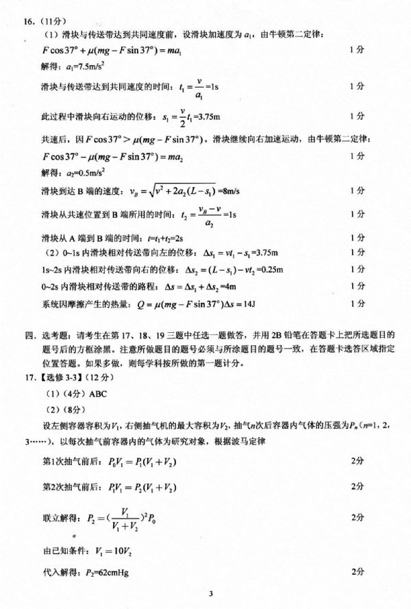 2016-2017学年度武汉市部分学校新高三起点调研考试物理试题参考答案及评分细则