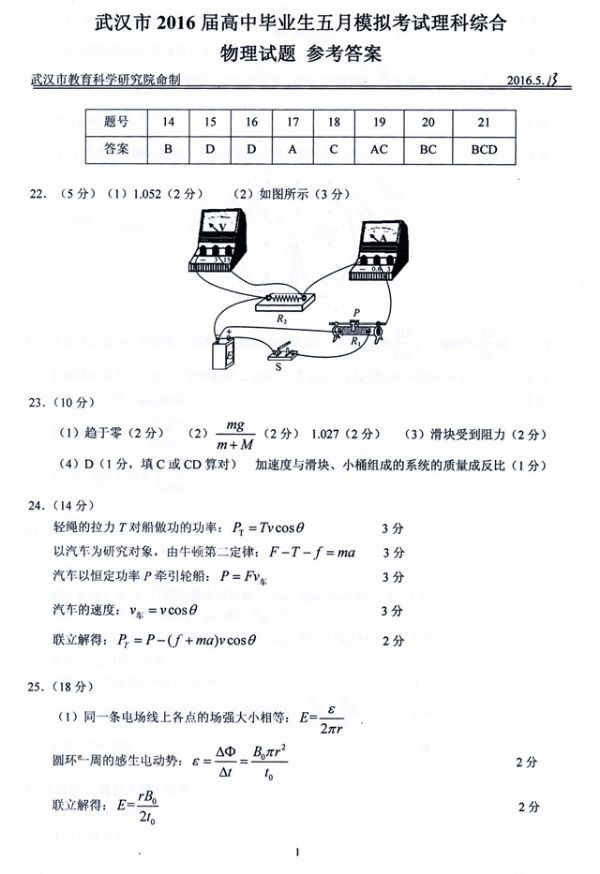 下一条:武汉市2016届高中毕业生五月模拟考试理科综合化学参考答案及评分细则