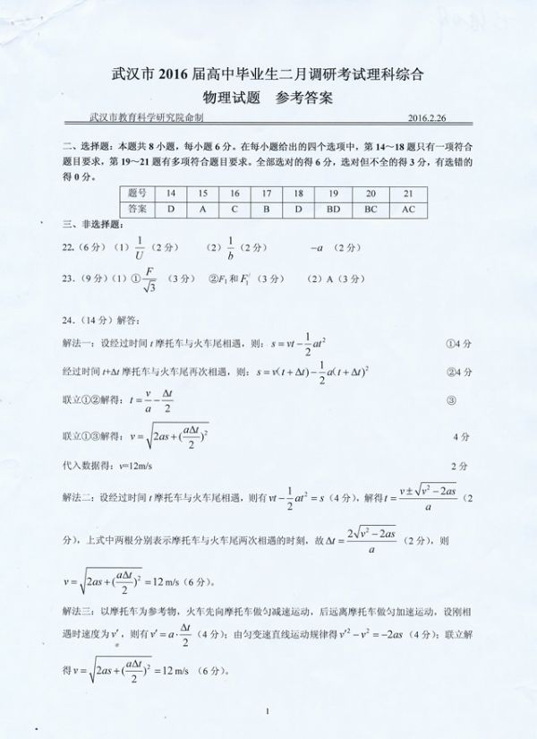 下一条:武汉市2016届高中毕业生二月调研测试理科综合化学试题参考答案及评分细则