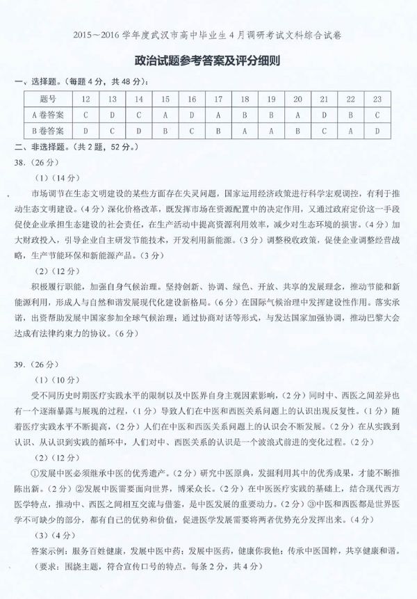 下一条:武汉市2016届高中毕业生四月调研测试语文试题参考答案及评分细则