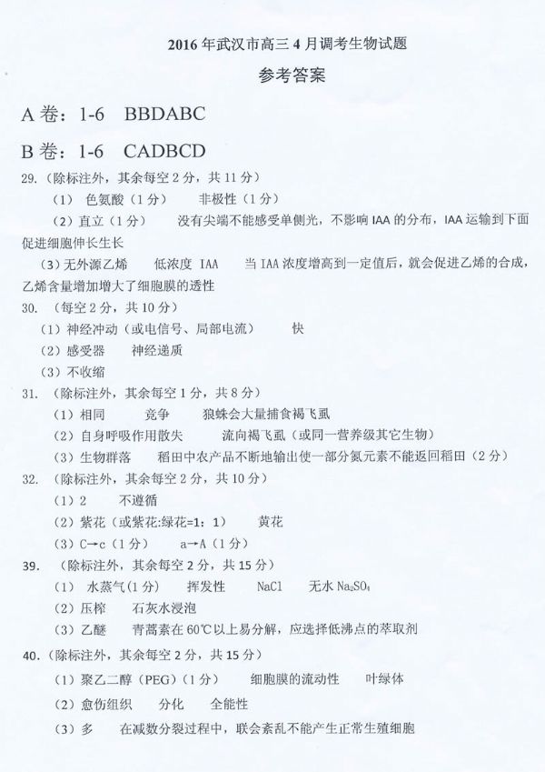 下一条:武汉市2016届高中毕业生四月调研测试文科综合政治试题参考答案及评分细则