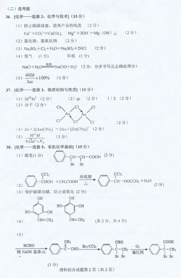 武汉市2016届高中毕业生四月调研测试理科综合化学试题参考答案及评分细则