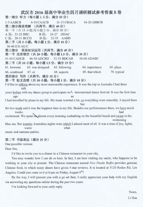 下一条:武汉市2016届高中毕业生四月调研测试理科数学试题参考答案及评分细则