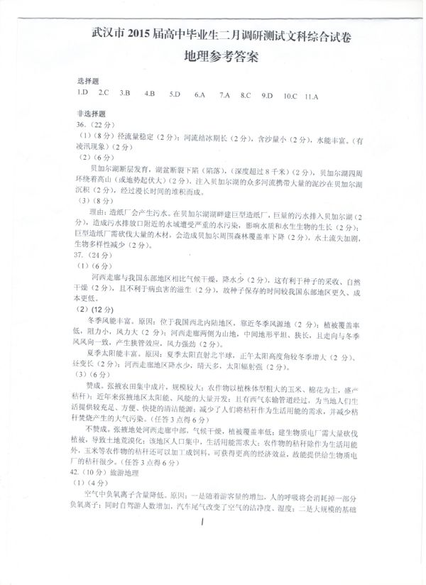 下一条:武汉市2015届高中毕业生二月调研测试文科综合(历史)参考答案及评分细则