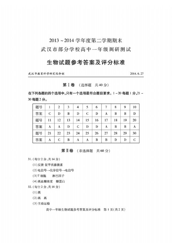 下一条:2013-2014学年度第二学期期末武汉市部分学校高中一年级调研测试地理试题参考答案及评分细则