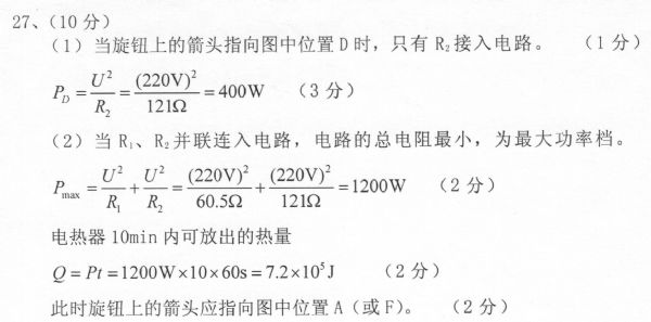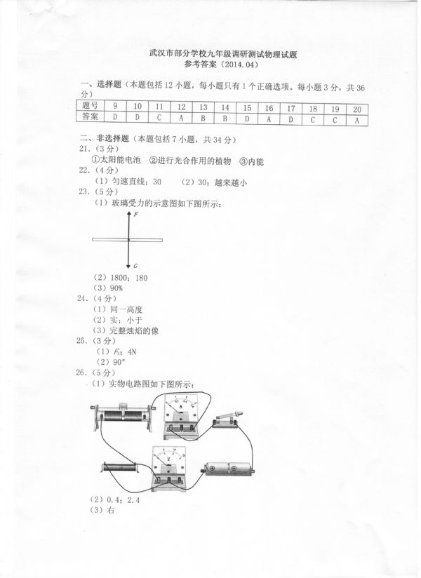 九年级四月调考物理答案