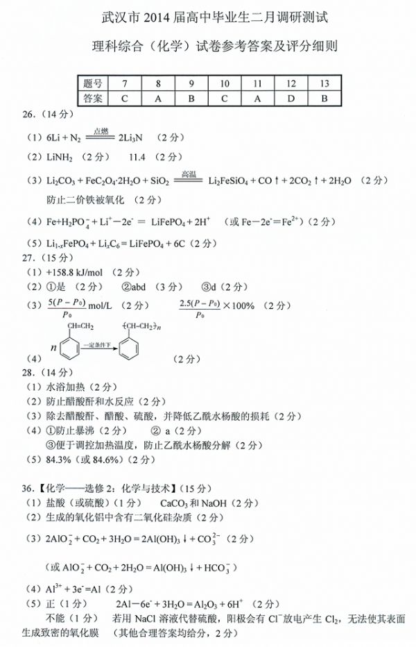 下一条:武汉市2014届高中毕业生二月调研测试理科综合(物理)试题参考答案及评分细则