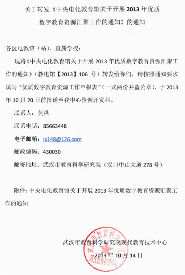 中央电化教育馆关于开展2013年优质数字教育资源汇聚工作的通知