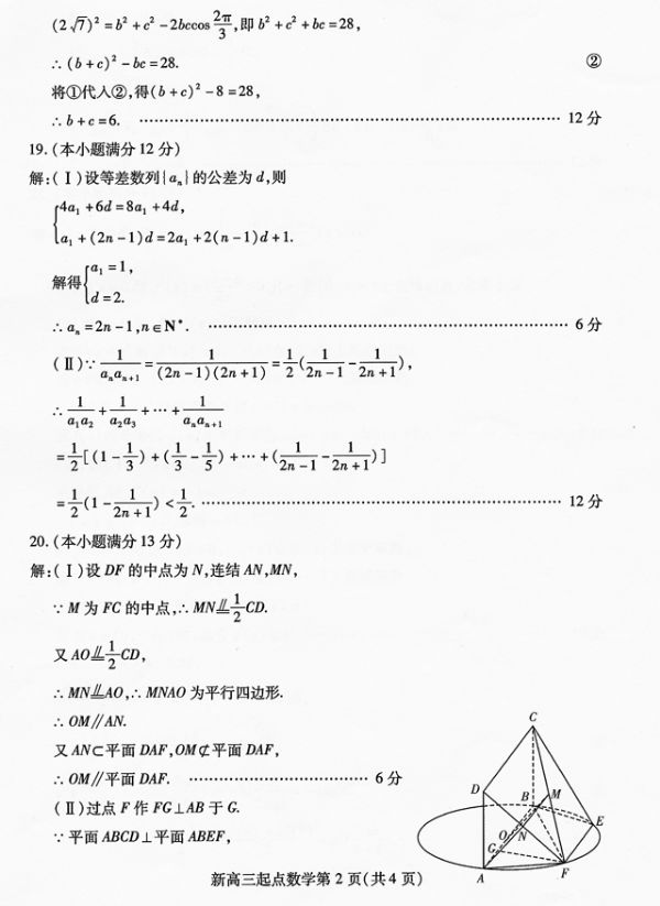 2013-2014学年度武汉市部分学校新高三起点调研测试数学(文科)参考答案