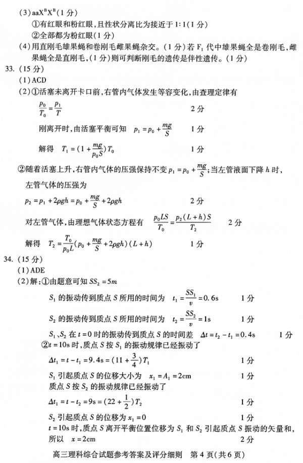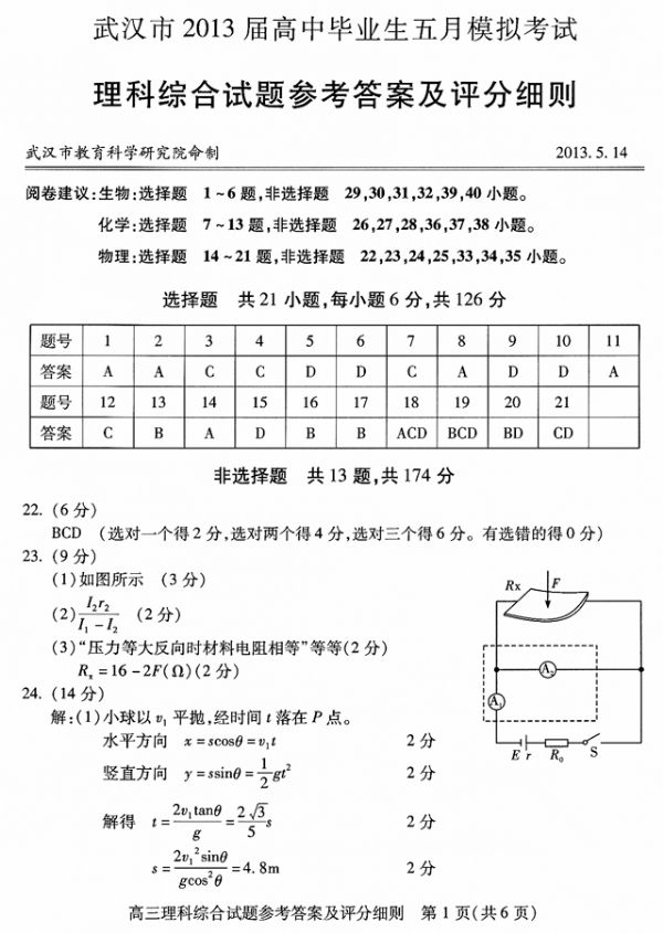 武汉市2013届高中毕业生五月模拟考试理科综合参考答案及评分细则
