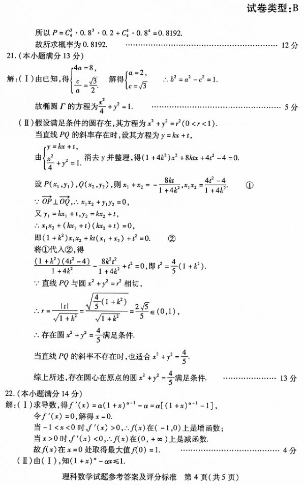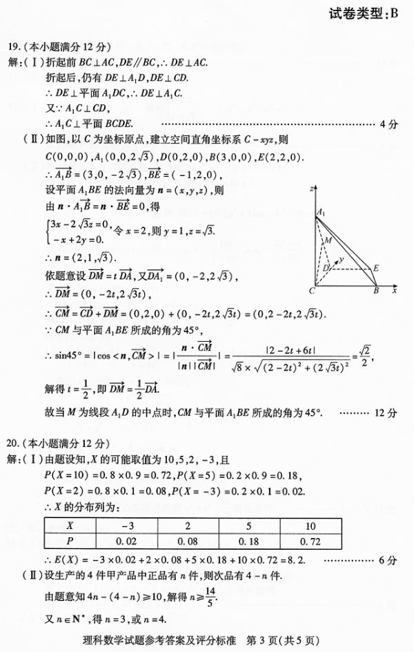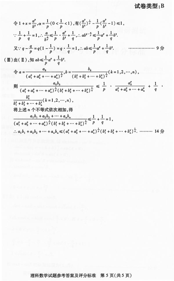 武汉市2013届高中毕业生四月调研测试理科数学试题(B卷)参考答案及评分细则