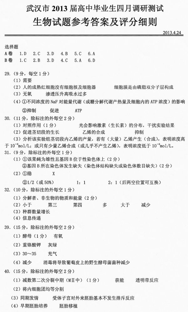 上一条:武汉市2013届高中毕业生四月调研测试理科综合化学试题参考答案及评分细则