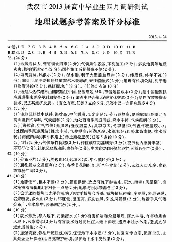 下一条:武汉市2013届高中毕业生四月调研测试文科综合历史试题参考答案及评分细则
