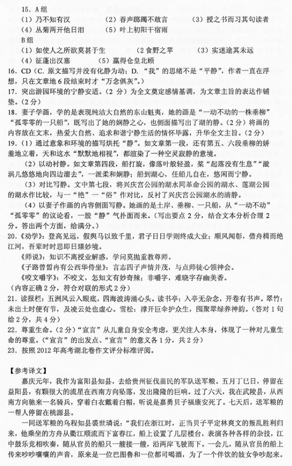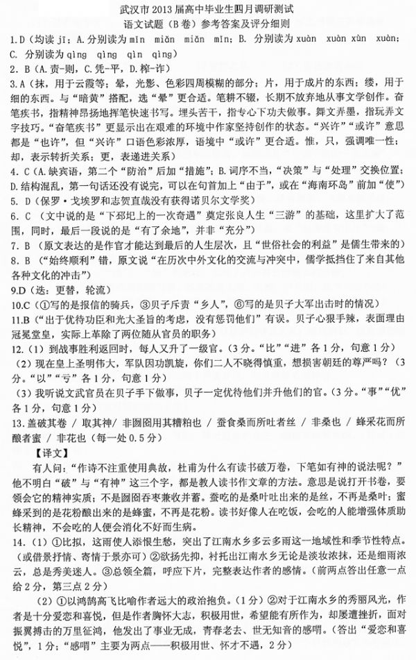 武汉市2013届高中毕业生四月调研测试语文试题(B卷)参考答案及评分细则