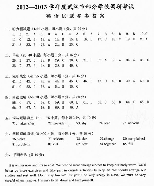 上一条:2012-2013学年度武汉市部分学校九年级调研测试——数学试卷参考答案