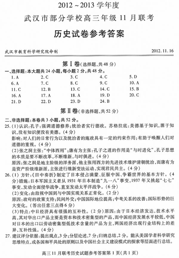 上一条:2012--2013学年度武汉市部分学校高三年级11月联考理科数学参考答案