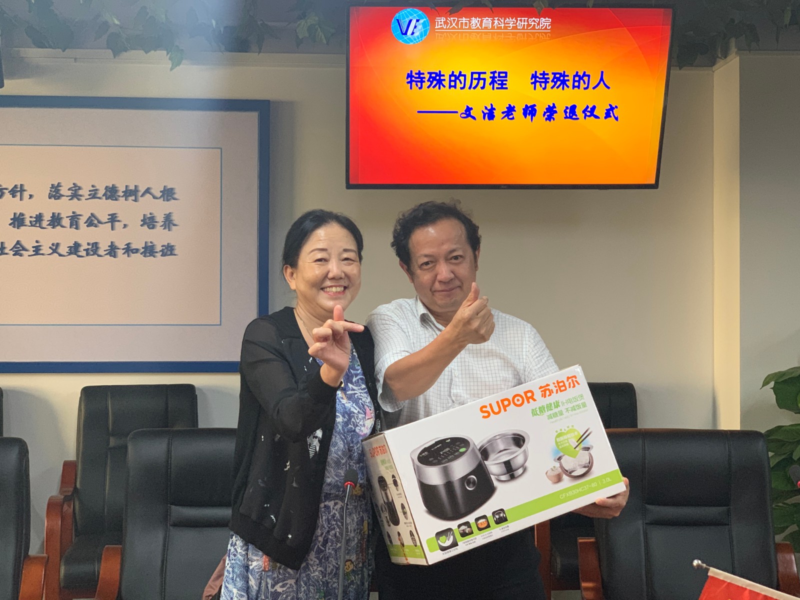 2020年9月3日下午三点,一束鲜花开启了在赢乐lV7011会议室隆重举行的文洁老师荣退仪式。会议由党群工作部黄炜副部长主持。院党委书记、院长李碧武,院党委委员、副院长朱长华,院工会主席谢琼及基础教育研究所全体人员参加了会议。