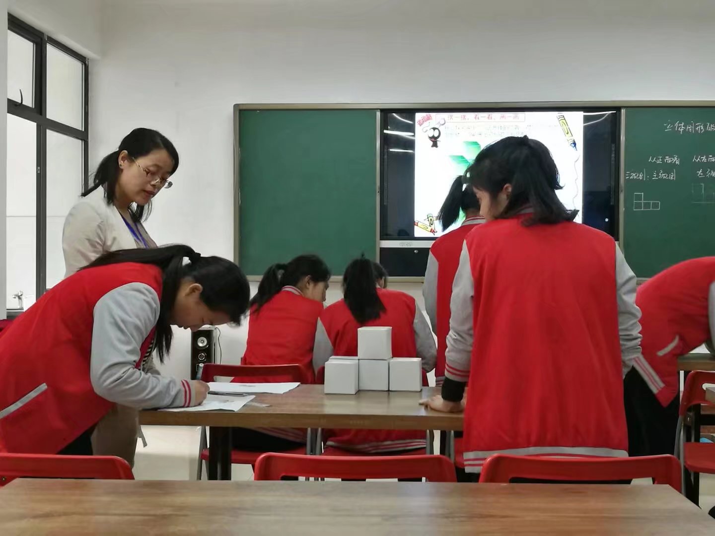 武汉市第一聋校李文凤教师教授数学课《立体图形的三视图》。