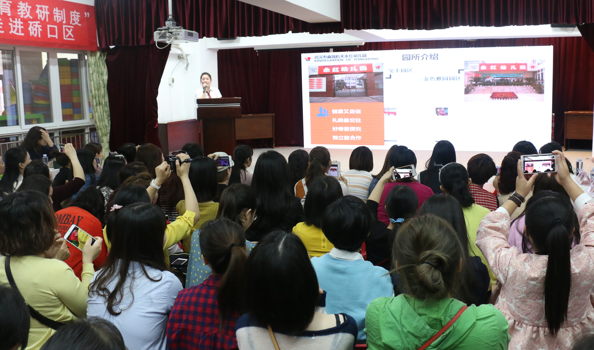 (通讯员 严红)2017年4月19日上午,国家学前教育改革发展实验区“健全学前教育教研制度”暨武汉市新一轮学前教育活动实验下园视导走进武汉市市直机关永红幼儿园金色雅园园区。来自江汉区、江岸区、硚口区、东西湖区、黄陂区以及新洲区的教研员、园长和老师们共计近100余人参加了本次活动。本次活动由:幼儿园艺术活动展示、园本教研经验分享、艺术领域教学活动展示以及现场教研活动四个环节组成。