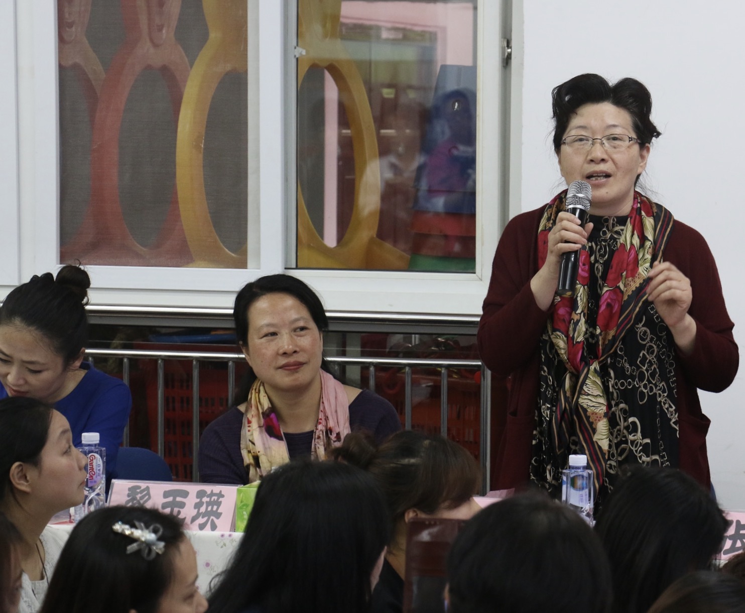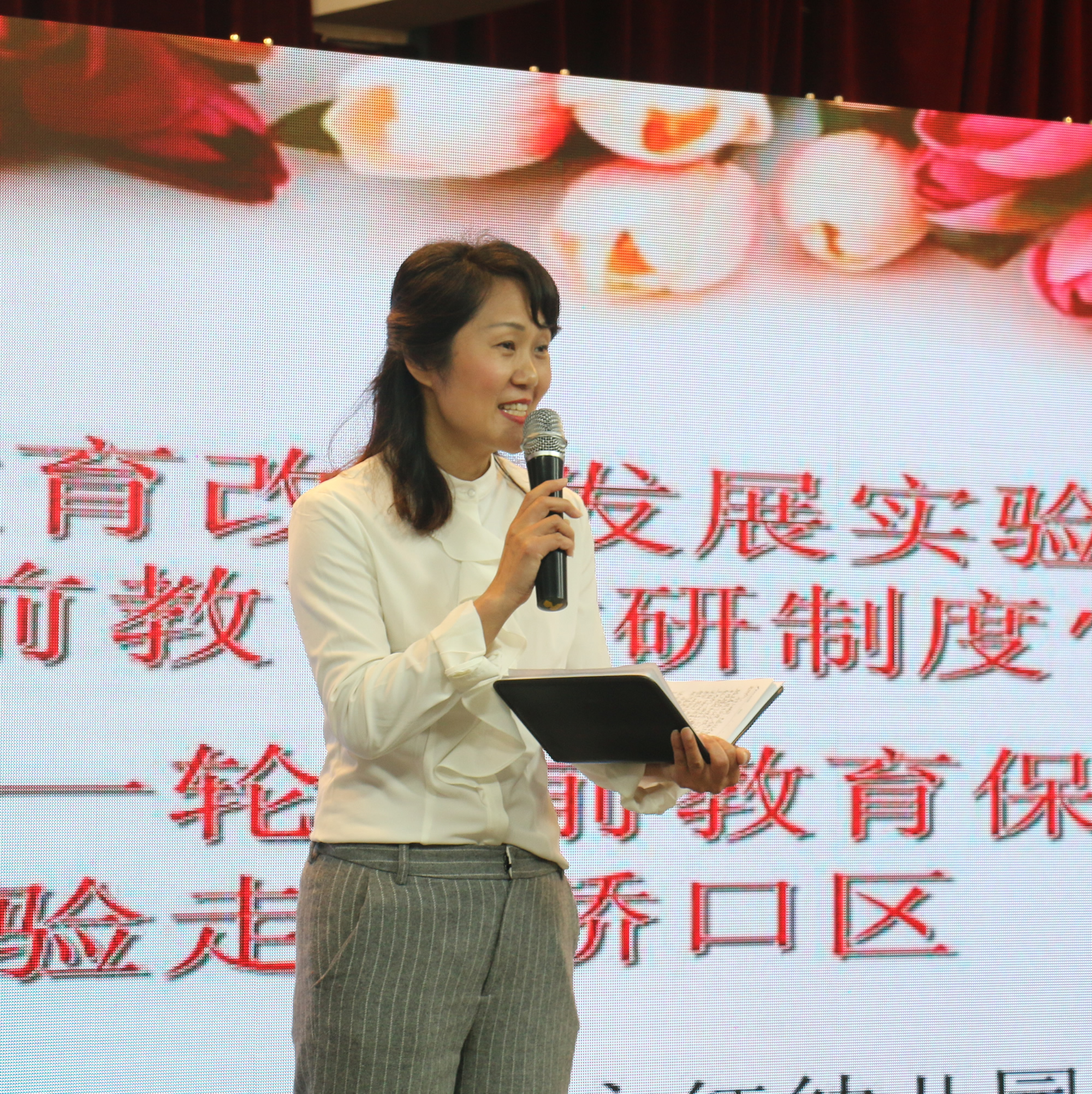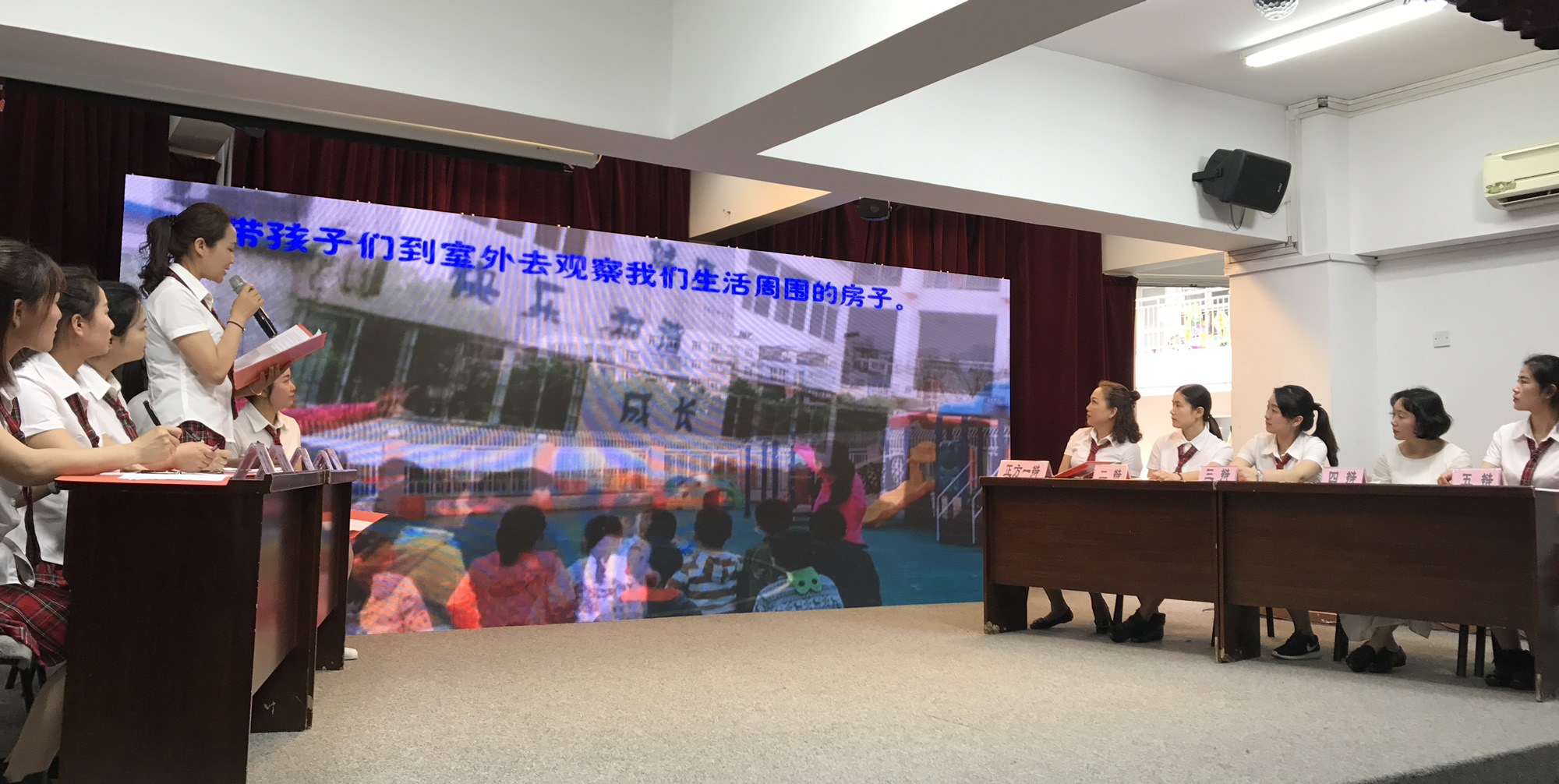 第二个环节由永红幼儿园袁主任围绕“合作互动 携手共进”为主题进行了园本教研制度建设的经验分享。在整个汇报过程中,运用了多媒体信息技术手段,将永红幼儿园一园四址的园所特点、幼儿园的艺术特色以及幼儿园优势互补教研制度建设的实践、探索,进行了全面的解读。围绕幼儿园优势互补教研制度建设的产生、幼儿园优势互补教研制度建设的运行机制、幼儿园优势互补教研制度的实践模式三个方面,以简洁有力的方式和在场的专家、园长和老师们进行了分享和交流,体现了一园多址办园模式下教研活动合作互动和优势互补的有效性。