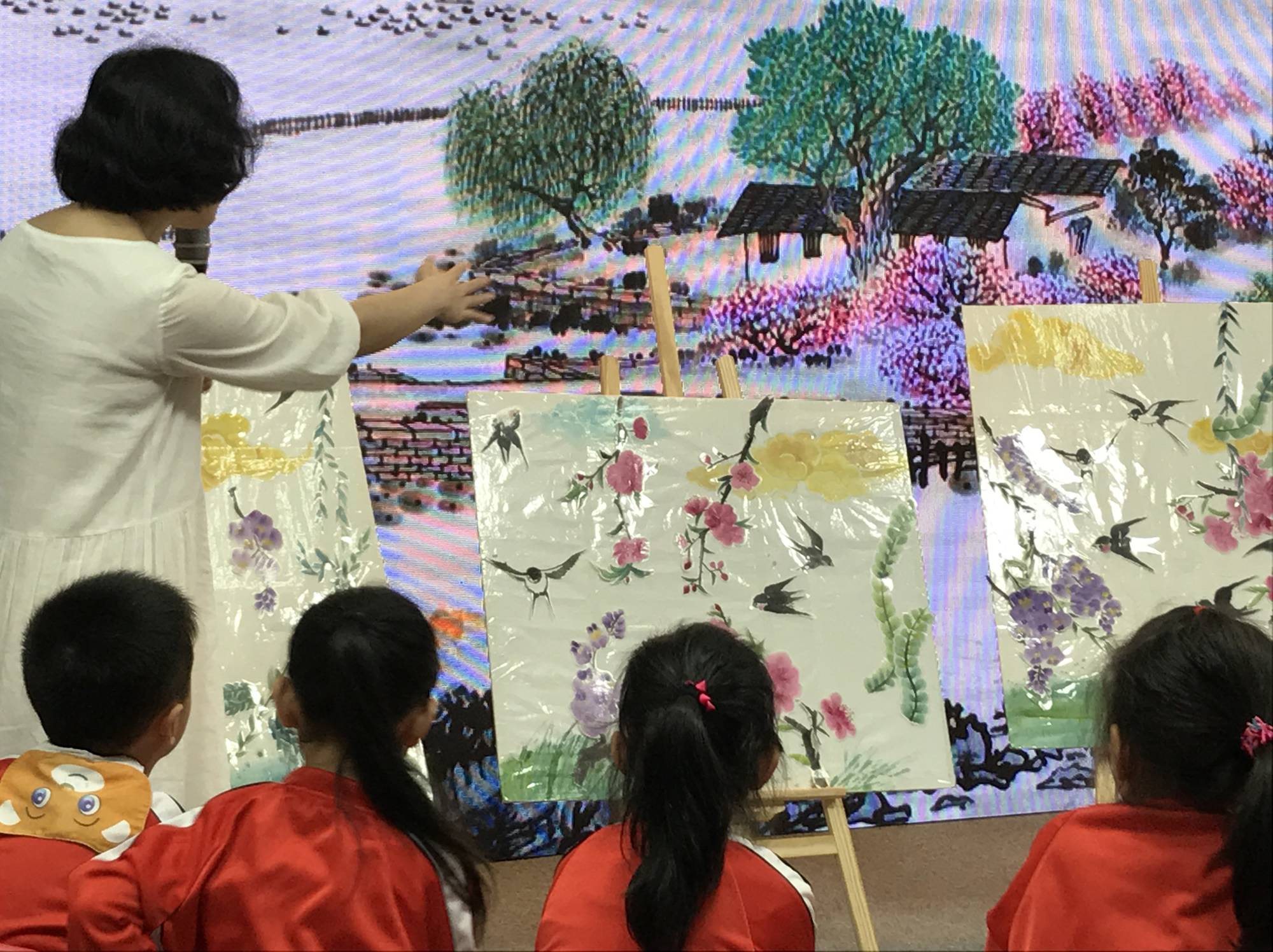 (艺术活动《杨柳紫藤春燕图》执教现场)