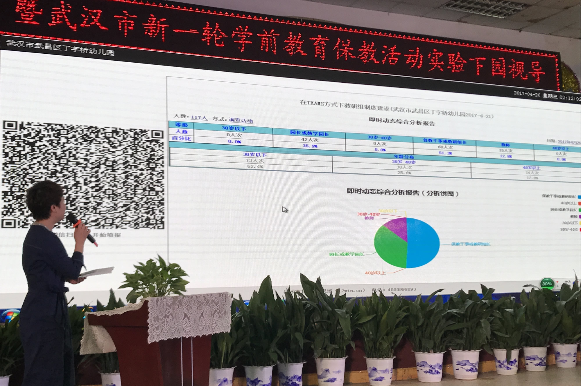 第一个环节:隐形的翅膀。丁字桥幼儿园展示了她们立足网络平台的教研,在以园所教研管理者与教研组长并肩教研的TEAMS方式下,建立网络教研制度,让网络教研充分发挥其优势,达到教研效果。教研通过群聊直播互通信息,这种网络教研的多元化,民主化的评价方式,如同隐形的翅膀,为教师的提升助力,也为我们展现了一个有积淀,有情怀,有能力的教研团队。