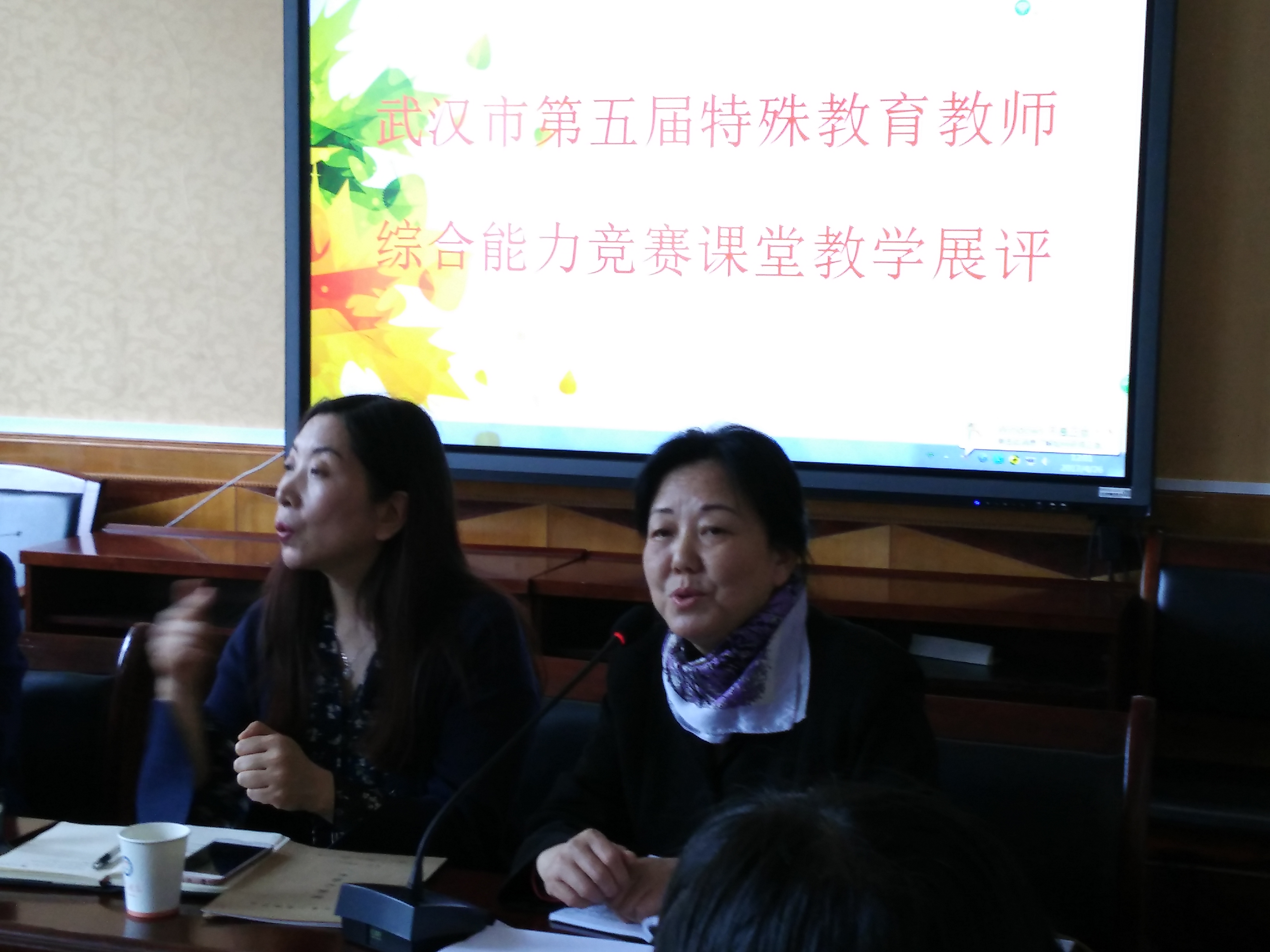 参加此次展评活动的有武汉市教育学会特殊教育专业委员会理事长文洁、秘书长张晓雯,大赛评委齐玲、姬振红、刘飞老师,以及来自全市各个特殊教育学校的教师代表共计40余人。