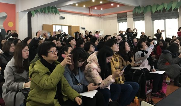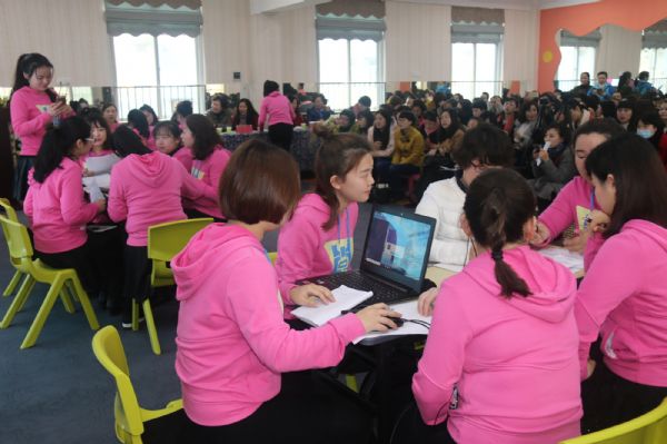 围绕“区域活动中教师的角色定位”这一话题,江岸区实验幼儿园进行了现场园本教研。通过游戏导入、微格研究、头脑风暴、分组研讨、小组呈现等教研形式,教研组展开了热烈而深入的讨论。紧接着青年教师万双执教了一节大班艺术活动《倒霉的狐狸》,在有趣的故事情境中,孩子们生动幽默的演绎了狐狸与母鸡的争斗,用心灵感受音乐的情绪与节奏。活动中孩子们的倾情投入,不时的童言稚语、妙语连珠,引来阵阵快门声和赞赏声。