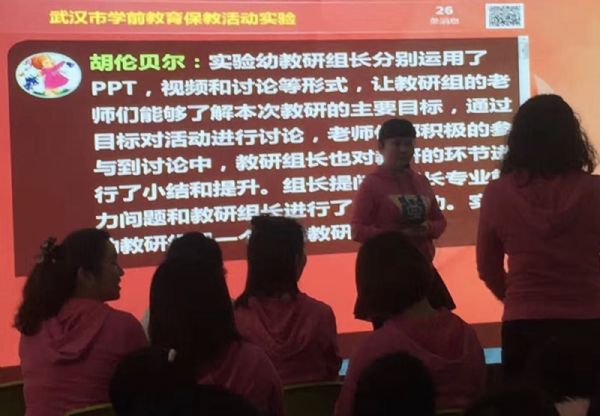 在经验分享环节,江岸区学前教研员尹力老师代表江岸区做了主题为“完善制度求提升、创新机制谋发展”的交流分享,尹力老师站在构建教研文化的高度,从创新“两研一跨”教研机制、实践“三+四”教研格局、突出三个抓实、夯实分层次培训等角度,全面介绍了我区学前教育园本制度建设的做法与体会,既有实践基础,又有理论概括。