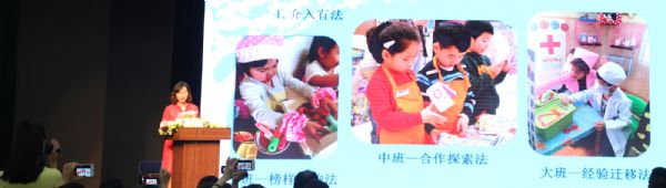 第一,经验分享。这个环节主要围绕“幼儿园区域环境创设与指导”主题展开。来自武汉市汉阳区机关幼儿园杨丽园长为大家分享了《“活绘本”环境下的幼儿园区域活动组织实施与指导》。该园将一个个小小绘本中美丽的画面,有趣的情节、角色等元素通过区域设置,材料投放,从纸质的绘本书中带到孩子们活动室里、走廊里,让大环境中见小社会、小环境中见大乐“区”,以满足幼儿自主游戏的需求,通过“用活绘本元素、多方资源、评价机制”等途径,引导幼儿按照自身的速度和方式,从原有水平向更高水平发展,努力达到《指南》所呈现的发展阶梯。听了杨园长的分享,为我们今后在“活绘本”环境下的区域活动组织实施与指导指明了方向,相信通过“理念、目标、实践、反思” 各环节有效衔接,幼儿园的区域游戏的整体质量一定会不断提升。