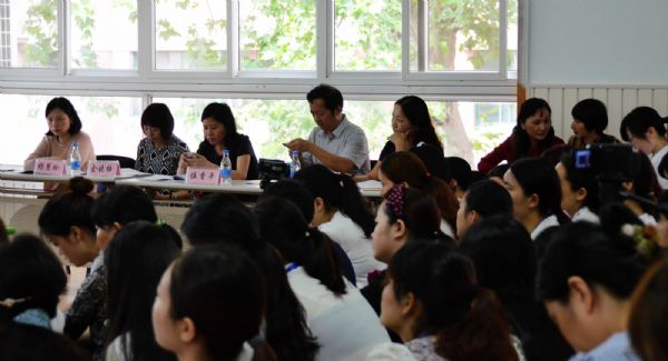 (专家与参评教师、观摩园长们面对面交流互动)