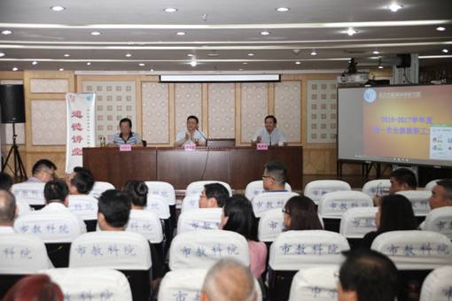 李书记传达了我院今年暑期中层干部会的有关内容和精神。今年我院的暑期中层干部会得到委局领导的高度重视。市委教育工委徐定斌书记、市教育局夏春胤副局长相继莅临会议并作了重要讲话,对我院上学年的工作成绩表示肯定,对我院新学年的工作提出了希望,对我院领导干部和教职工的工作提出了要求。会议还开展了部门工作交流。院党委副书记、纪委书记李碧武作了大会的主题报告。报告包括了4个方面的内容:一是过去一学年工作成绩的总结;二是面临的形势与存在的困难;三是新学年的工作思路;四是对干部的工作要求。会议就大会报告和我院发展进行了分组讨论和集中交流。会议还分别传达了工委组织部党费收缴、基层党组织换届、“两学一做”学习教育专项会议,全市基教工作会和市区教育联席会的有关精神。