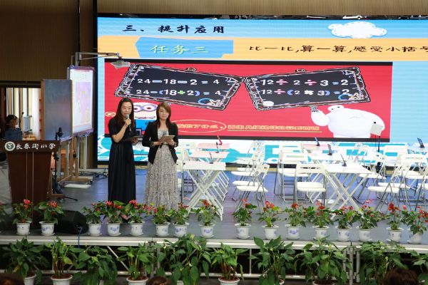 然后是长春街小学数学教研团队的宁莉、翁志娟两位老师对二年级下册《混合运算整理和复习》进行说课。