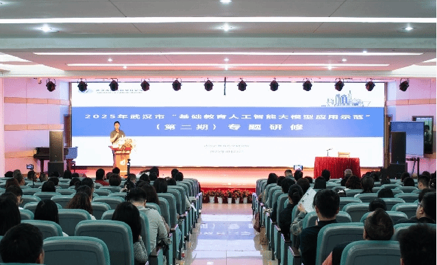 4月23日上午,2025年武汉市“基础教育人工智能大模型应用示范”(第二期)专题研修在武汉市江岸区育才第二小学举行,各区电教馆长、电教教研员,大模型应用示范实验校代表、种子教师共计200余人参加研修,活动由赢乐lV现代教育技术中心王康博士主持。