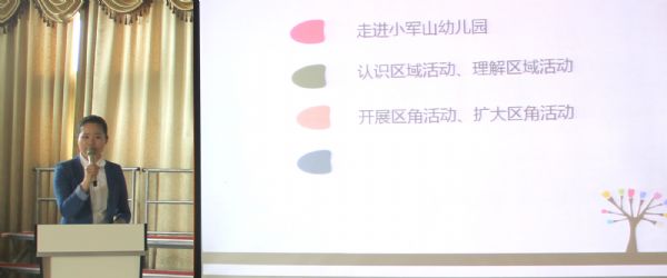 接着,研讨交流。各园就区域活动创设与组织实施过程中主要做法和存在的问题进行交流。活动中,既有成熟园所的精彩汇报,也有新进园所的自信讲述。如汉南育才幼儿园从思考、行动和改变三个方面介绍了区域活动开展过程中的具体行动和反思性成长,体现了以幼儿为本的主体思想;神龙幼儿园通过教育家们的哲言和具体的案例,向大家播撒教育智慧的种子;小军山幼儿园、港丽幼儿园、大嘴小学幼儿园用心解读了区域活动中孩子们的行为和想法,让我们看到了她们对于幼儿教育的活力与热情;最后,凤凰苑幼儿园作为本次活动的牵头园所向大家进行了整体介绍,分享了园所区域活动发展历程及下一步发展方向,并呼吁每一位共同体成员积极行动起来。