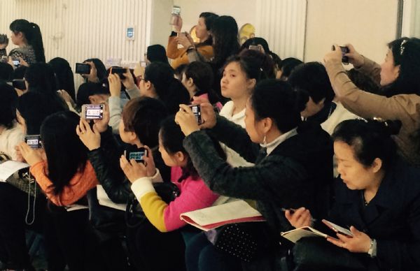 (参与教研活动的园长、教师积极踊跃,活动现场研讨气氛十分火爆)