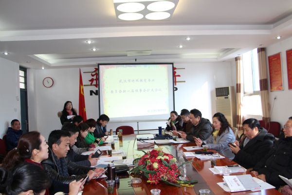 2016年1月13日下午,武汉市特殊教育专业委员会在江岸辅读学校召开了新一届理事会第一次扩大会议,这是第八届特殊教育专业委员会理事会成立后的第一次工作会议,也是“十三五”开局年的第一次工作会议。参加本次会议的有于尚斌总顾问、文洁理事长、常务理事李新民校长、刘堂鑫校长、王尤雄校长、王霞校长、樊芸校长、张丛校长、蔡东启校长、王桂梅校长、柏玉红教研员、孟玥秘书长、曾艳副秘书长、张晓雯副秘书长和胡芳老师,学术委员会顾问雪湘明、齐玲、学术委员会王麟主任,艺术委员会杨小玲主任以及《武汉特教》杂志金国华主编、刘飞和薛卿两位责编共计22人,会议由孟玥秘书长主持。