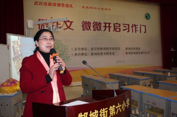 新洲区教研室分管小学主任朱幼菊作了《微作文,微微开启习作门》的主题报告,从构建“微作文训练”课程的缘由、“微作文训练”课程资源的研发、“微作文训练”课程资源的运用、实施“微作文训练”的收获与思考四个方面向与会代表汇报了新洲区开发和运用“微作文训练课程”的实践。