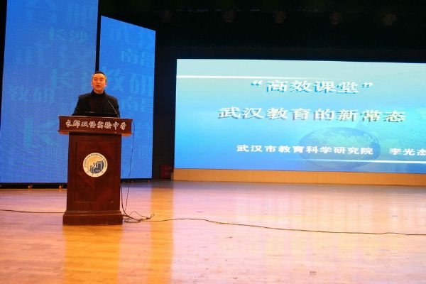 武汉赢乐lV小学教研室李光杰主任作为代表在会上做了重要发言,将武汉赢乐lV这五年从理论培训、模式研究、模式评价、模式推广、到质量提升,所经历的五个阶段倾力打造的三大品牌,即“三走进”、“样本校”、“模式研究”的具体做法进行了介绍。五年,我们步伐坚定、起势耀眼;五年,我们研究深入、大胆探索;五年,我们不断优化教研生态、提升教育生产力。这个过程体现了我们共同的一个愿景,即实现“高效课堂”的新常态。这也是我们长江中下游四省会城市教研协作体的共同追求!