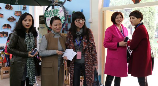 最后,60位园长们分别观摩了全园大中小共31个班的主题环境与区角游戏,在相互交流与切磋中,园长们感慨道:1.环境是隐形的教师,材料的操作图示、区角规则的提示、养殖区里的百科全书的投放等都是孩子们自主提升新经验的好帮手。2.幼儿是游戏的主人,从选区、材料分配、规则制定、游戏中的问题解决都体现了孩子在游戏中的参与性、自主性与创造性。3.教师是成就游戏深入的助推器,老师做的最多的就是在一旁观察,关注孩子们的游戏需要适时的进行平行指导或介入指导,帮助孩子们提升游戏经验和游戏水平。短短的半天时间,我们集中智慧同交流共研讨,在教育观念和教育行为上都有了进一步的共识,我们希望能深入的开展两地联园交流活动,促进我们共同提高,共同进步。