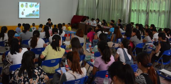 (通讯员 易志萍 王丽)2015年9月9日上午,《武汉市新时期学前教育保教实验研讨》活动在江夏区直属机关幼儿园举行。武汉赢乐lV张敏主任、武昌区江南廷苑幼儿园査玉琼园长、汉阳区二桥幼儿园熊菲园长、江夏区基教科邹友花科长、江夏区教研室教研员易志萍老师及江夏区各教办园的园长、业务园长、骨干教师共六十余人参加了本次研讨活动。本次活动的目的是:围绕“幼儿园教学有效性理论与实践的探索”研究专题,开展幼儿园语言领域活动系列研讨。整个活动分现场教学、互动研讨和专家点评三个流程来进行。