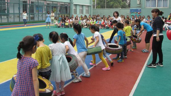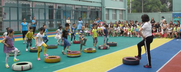 第二节教学活动呈现给大家的是北湖幼儿园胡华园长执教的健康领域教学活动《轮胎乐》。通过玩轮胎练习幼儿手指和四肢的力量,同时着重培养幼儿合作意识,使孩子体验到合作游戏无穷的乐趣。整个活动中,胡园长的活力感染着现场观摩的老师们,也深深的吸引着孩子们,使得他们主动去探究轮胎的多种玩法,给孩子们创造了一个愉悦的学习过程。