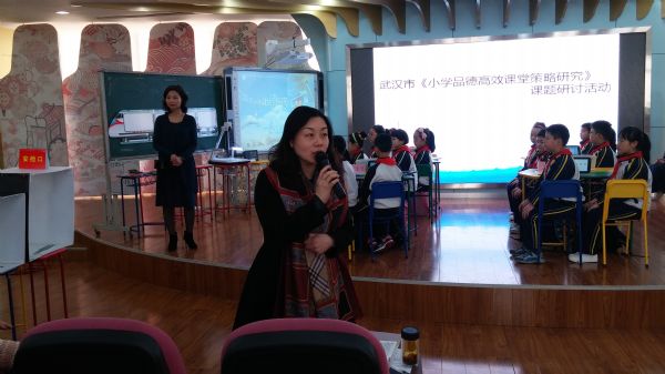 2015年3月27日上午,武汉市《小学品德高效课堂实施策略研究》课题研讨活动在武汉市江岸区育才怡康小学隆重举行。此次活动由武汉赢乐lV小学教研室主办,江岸区小学教研室承办,由获全国百名优秀校长称号的武汉市江岸区育才怡康小学吴亚玲校长为老师们展示了一堂生动有趣的品德与社会课《出行指南》。武汉赢乐lV小学教研室品德学科教研员孙玮老师、江岸区小学品德学科教研员张亮以及各区教研员约40名学校代表亲临现场,感受了吴校长的趣味讲堂,课后老师们还进行了经验交流以及课后教学反思活动。