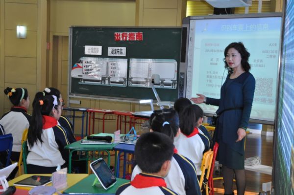 她巧设悬念,用问题探究和活动体验的教学方法让学生主动思考,团体合作,并且设置场景,让学生体验生活,环环相扣,妙趣横生,孩子们在品德与社会的课堂上习得了生活的智慧。教学中,丰富的多媒体软件为学生提供了更直观感性的画面。学生利用平板电脑,在老师创设的情境中根据各项不同的条件,探寻合适的出行方式,在自主学习、小组合作学习和研究性学习中,思考、探讨,共同完成了旅行任务。老师充分尊重学生,让学生成为课堂主体。