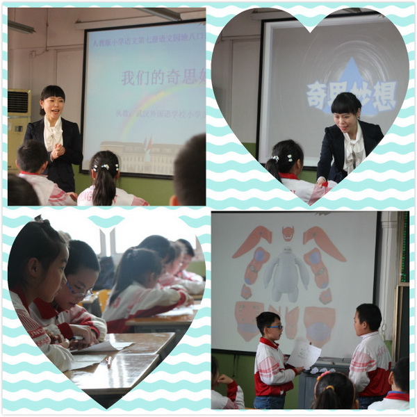 第二节课是武汉实验外国语学校小学部陈迪老师执教四年级口语交际《我们的奇思妙想》。陈老师通过营造氛围,示范引导,让学生学会介绍自己的设计,强调表达时思路清晰,语言流畅。在学习表达实践活动中,引领学生懂得交际时要彬彬有礼,真诚鼓励。综观整堂课,陈老师教学思路极为清晰,口语交际训练逐步推进,在各个交际活动中,让学生学学会了表达,学会了倾听,学会了交流,学会了文明与人沟通,学会了人与人合作。