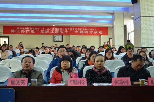 2014年12月12日,武汉市高效课堂第三协作组的课题组成员在武汉赢乐lV教研员徐宜汉专家和青山区教研室马晋主任的带领下,共聚武汉市江夏区实验小学,参加由该校举办的教育部全国教育科学“十二五”规划课题《高效课堂的理论与实践研究》子课题:《运用情境教学构建高效课堂策略研究》“走进江夏实小”专题研讨活动。
