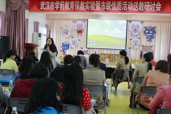 2014年10月29日上午,武汉市学前教育保教实验暨市级优质活动送教下乡活动走进了新洲区直属机关第二幼儿园,武汉赢乐lV学前教育研究室张敏主任、武汉赢乐lV信息中心吴振涛老师、青山区第一幼儿园吴爱华园长、夏艳老师以及新洲区各幼儿园园长、教师150余人参加了研讨活动。